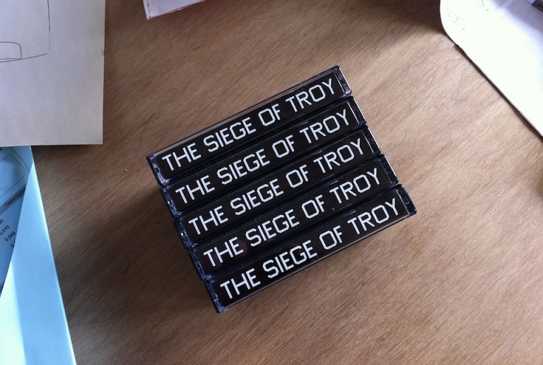 The Siege Of Troy, 11 track cassette album collection of straight-to-tape "warehouse" excursions and militant washed-out electronics. Produced by Gunnar Wendel/Kassem Mosse.