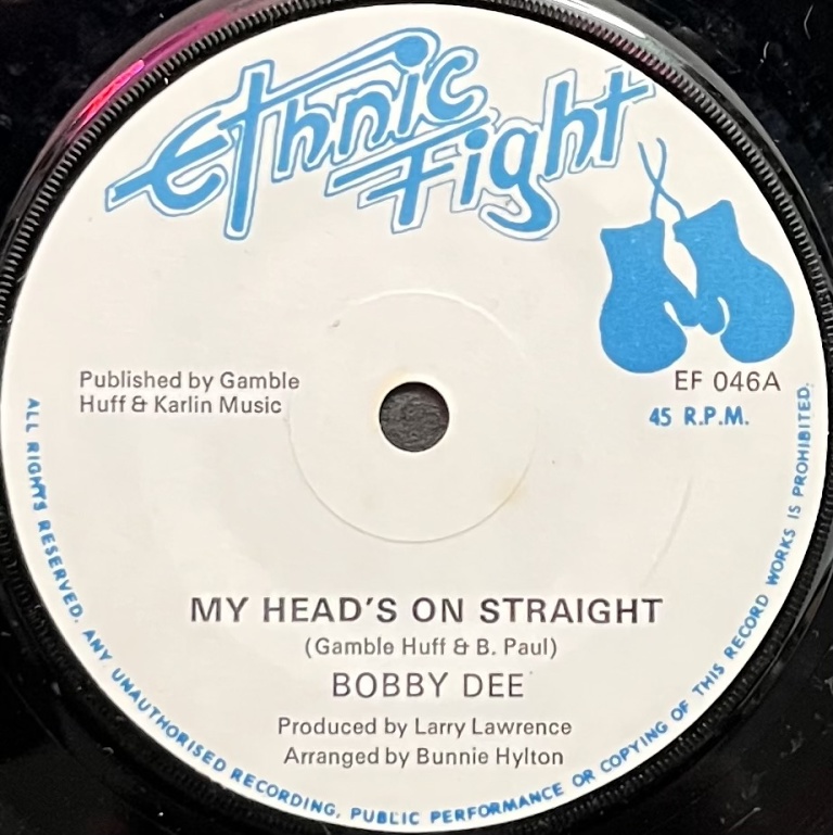 Original near mint copies from 1976 of Bobby Dee's superb version of Billy Paul's soul cut "My Head's On Straight". Produced by Larry Lawrence for his U.K. label Ethnic Fight.