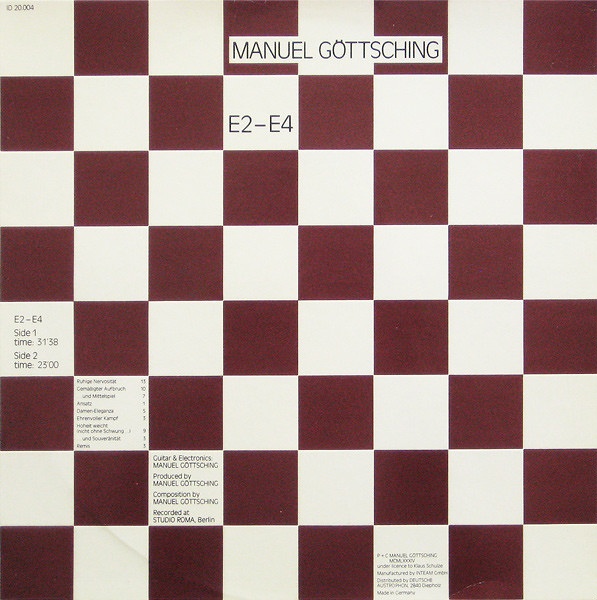 You'll probably already be acquainted with the name Manuel Gottsching - and you should be - but just in case you aren't, he was a pillar of Ash Ra Tempel's golden years and, among other of his contemporaries, was a pioneer of the genre that is often dubbed 'new age'. E2-E4 was a 1984 solo album from the man, and is certainly up there with the likes of Steve Reich's best minimal material, although it has often gone relatively unnoticed. MG Art from Germany have done us the favour of reissuing this monumental release, and we're utterly awestruck by how contemporary and fresh this album still is. In fact, one could say that a tune like "31'38" is the basis for the sound championed by new labels like Mood Hut, where a significantly danceable beat is laid above placid, warm harmonics. Similarly, "23'00" is just as balearic and phased out but, once again, we just can't believe how great this music still sounds more than thirty years later. Warmly recommended.