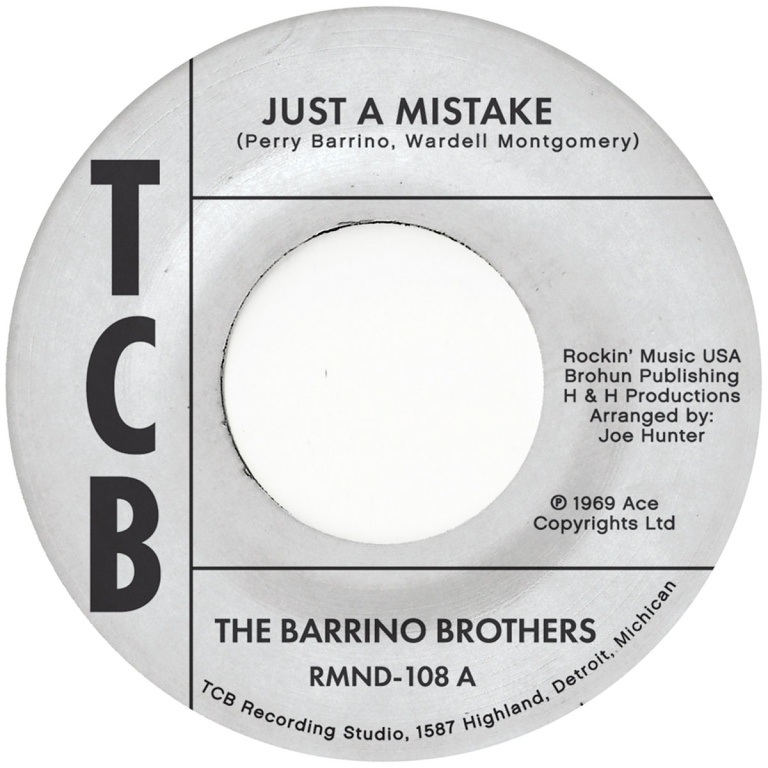 Detroit's Barrino Brothers entered Dave Hamilton's TCB studio in 1969 and cut a single that slipped quietly into local obscurity, only to be canonised decades later by deep-funk devotees. As Hamilton's catalogue was exhumed in the 90s, 'Just A Mistake' revealed itself as a minor grail, its scarcity fuelling collector mythology. The track itself coils with tensile elegance: a prowling bassline underpins clipped drum accents while the brothers' vocal harmonies rise in fervent and ecclesiastical unison. On the flip, 'I'll Take My Flowers Right Now' tempers that urgency with satin-sheathed phrasing and a rhythm section that glides in restrained, late-60s Detroit poise. A small, incandescent fragment of Motor City soul history.